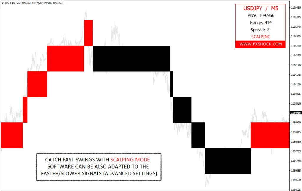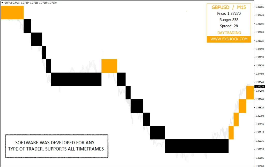 FXSHOCK Indicator System can be used on any Forex currency pair and other assets such as stocks, commodities, cryptos, precious metals, oil, gas, etc. You can also use it on any time frame that suits you best, from the 1 minute through to the 1-month charts.