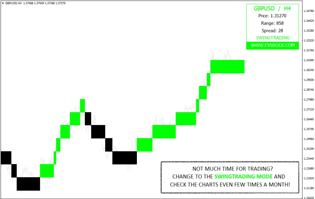 FX SHOCK free forex indicator system can give you trading signals you can take as they are or add your additional chart analysis to filter the signals further, which is recommended. While traders of all experience levels can use this system, it can be beneficial to practice trading on an MT4 demo account until you become consistent and confident enough to go live.