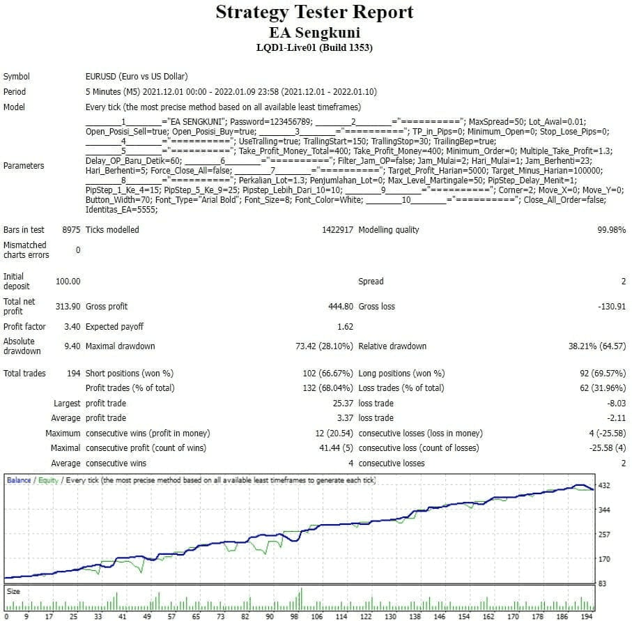For traders with a higher risk tolerance looking for aggressive growth in 2026, the Sengkuni MT4 EA presents a powerful, albeit dangerous, combination of strategies.