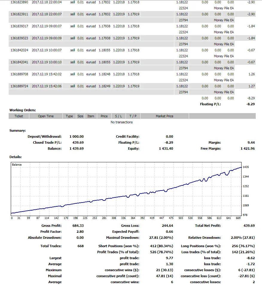 Money Pile EA is one of the most popular, profitable, and successful EA. this EA has a lot of advantages like risk less, more profitable, and money-back 20/30% within per month. This system works best with the two most common pairs EUR/USD and GBP/USD.