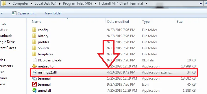 Copy “msimg32.dll” to ROOT terminal folder