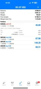 Those trades closed +211 dollars with one loss and here are my today’s opened trades. I’m really impressed till now