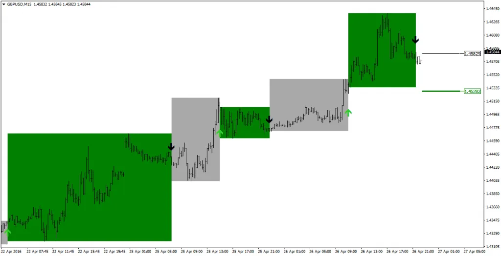 FX Arcanum Indicator is a unique system that puts a strong emphasis on analyzing the behavior of the market and traders. The system also uses an algorithm that shows you the current market phase and entrance based on the market behavior.
