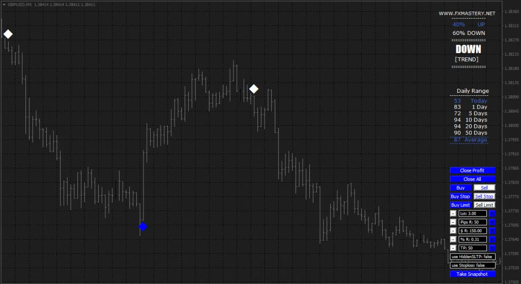 FX MASTERY free forex indicator system can give you trading signals you can take as they are or add your additional chart analysis to filter the signals further, which is recommended. While traders of all experience levels can use this system, it can be beneficial to practice trading on an MT4 demo account until you become consistent and confident enough to go live.