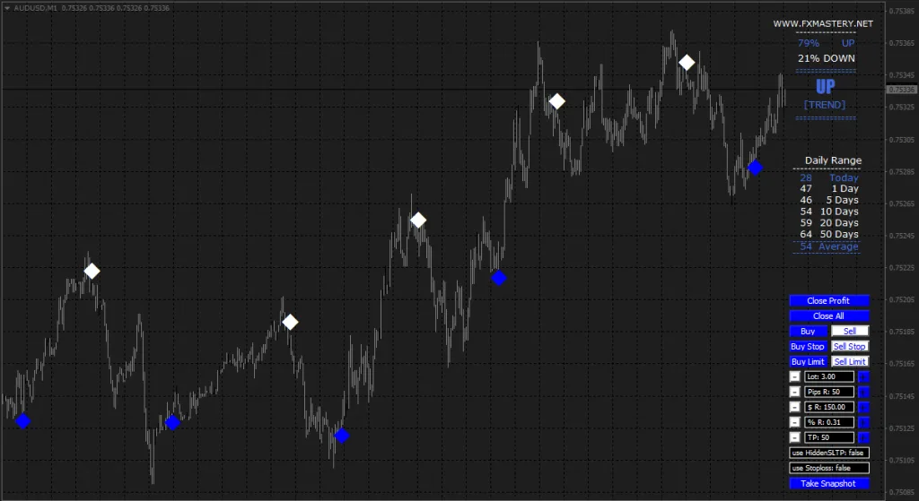 It uses the latest advanced algorithms to calculate changes in the price movement and generates signals right on your MT4. You are most welcome to check more details and trading examples and start making great trades with FX MASTERY every single day.