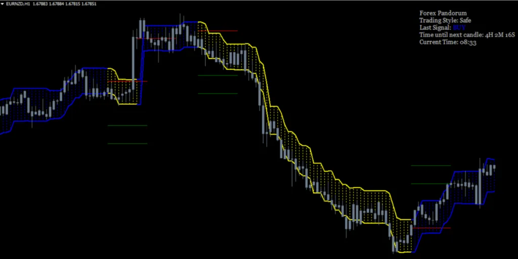 The Forex Pandorum Indicator can give you trading signals you can take as they are or add your additional chart analysis to filter the signals further, which is recommended. While traders of all experience levels can use the Forex Pandorum Indicator, it can be beneficial to practice trading on an MT4 demo account until you become consistent and confident enough to go live.