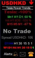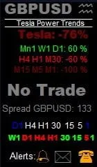 - Tesla M15, M5, M1 %: Show you the Tesla Power trend in those TFs. Short periods.