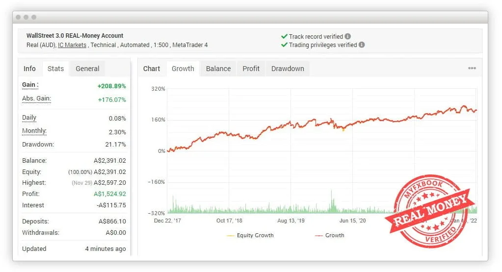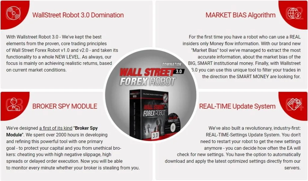 WallStreet Forex Robot 3.0 is the latest innovation as an AI to help online traders filter their trades. It helps to protect the user accounts, keeps a target for profit, and checks for minimal loss. For the first time, an online robot can use money flow information from true insiders.
